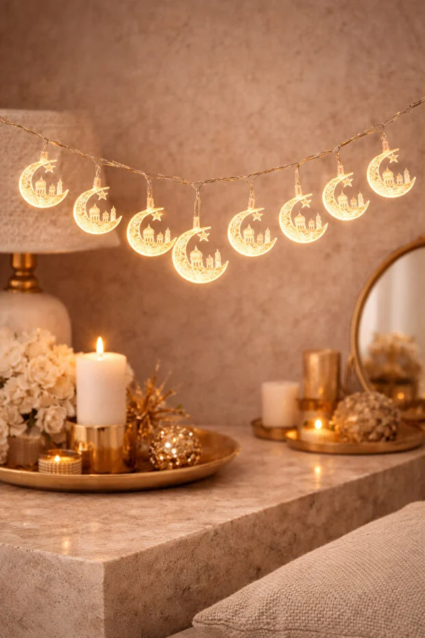 0 Review Of Product سلسلة إضاءة نهارية من ديفايز بطول 3 أمتار، مزودة بـ 20 مصباح LED، مناسبة لمساجد رمضان، تعمل بالبطارية، إضاءة زخرفية