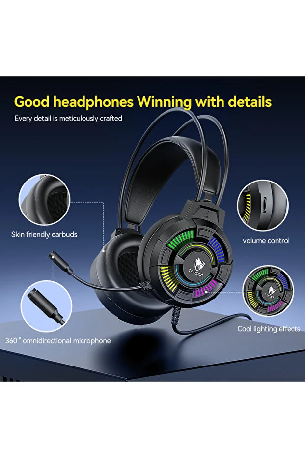 سماعة الألعاب الاحترافية DarkRage 7.1 RGB مع ميكروفون للكمبيوتر الشخصي وPS وXbox مع أضواء وأضواء ملونة