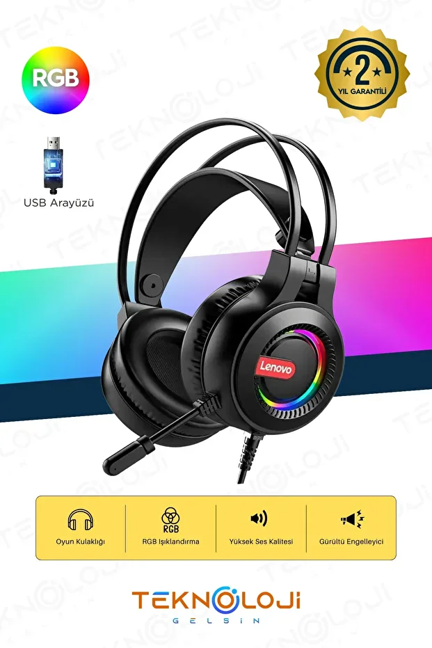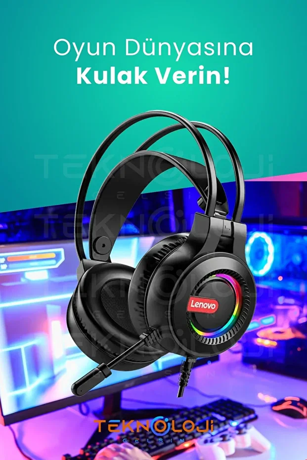 سماعة Lenovo G80B للألعاب بصوت محيطي 7.1 وRGB وميكروفون بعزل ضوضاء، متوافقة مع الكمبيوتر وPSX وXbox لتجربة صوت احترافية.