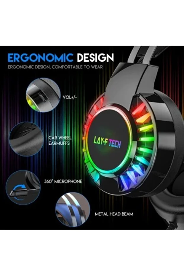 سماعة الألعاب Layftech H60 سلكية بصوت محيطي 7.1 وRGB وميكروفون ستيريو عالي الدقة لتجربة لعب غامرة وواضحة.