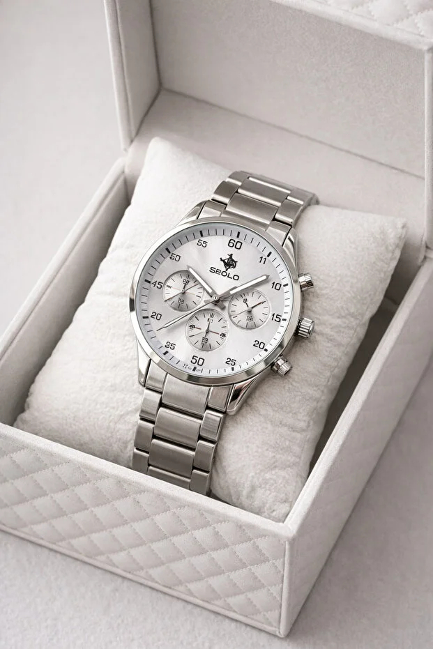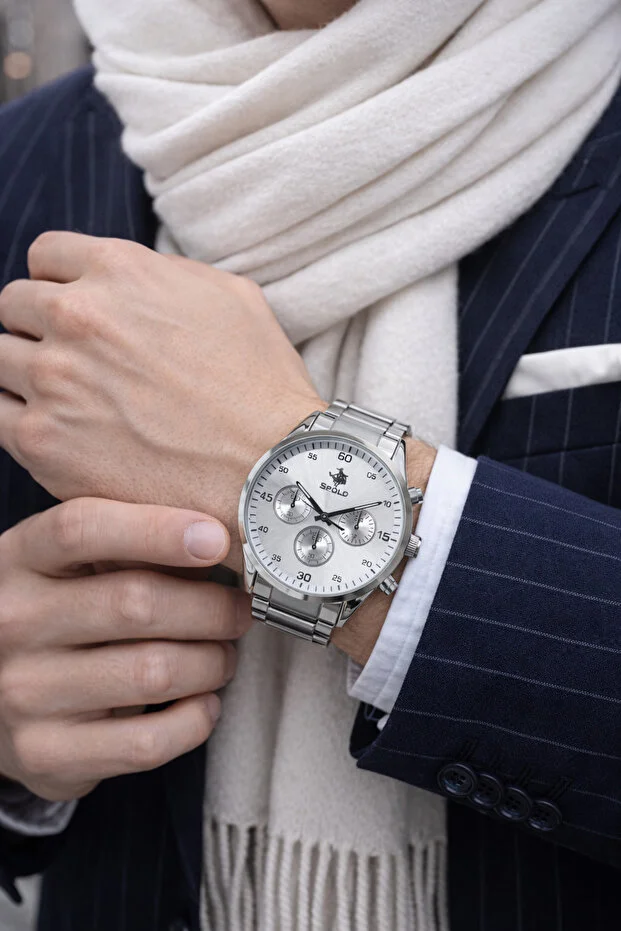 سوار ساعة رجالي من إس. بولو بتصميم خاص للموسم الجديد، بحزام معدني فضي، هدية مثالية لعيد الأب