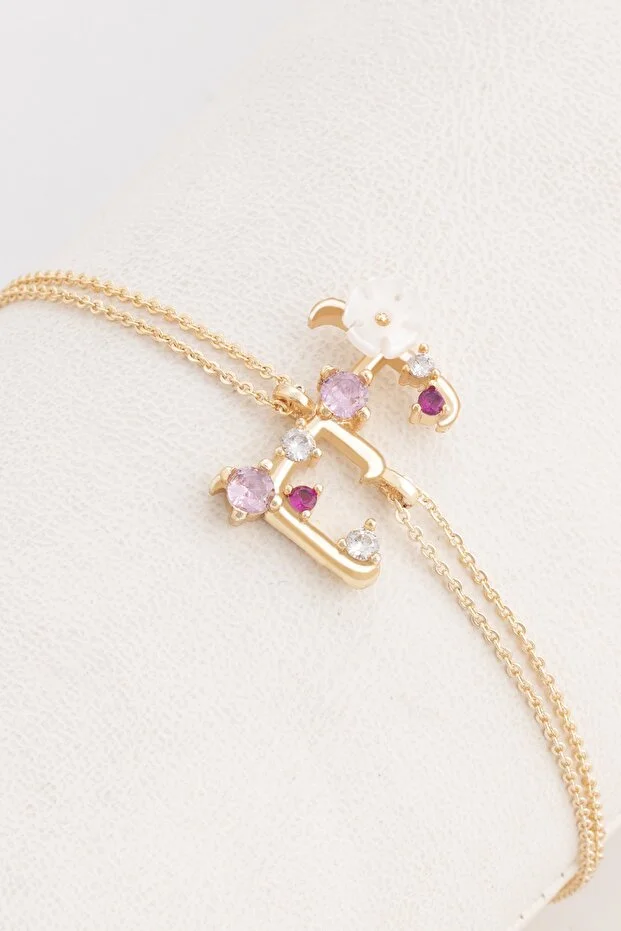 سوار سورتي أكسسوارات على شكل حرف E مرصع بالزركون على شكل زهرة ماغنوليا