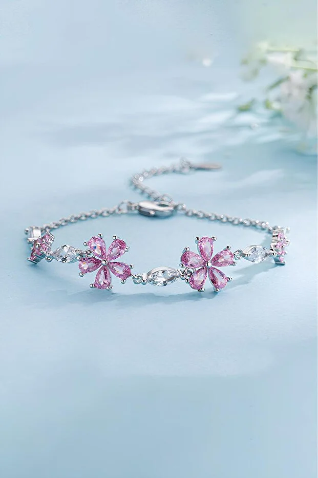 سوار من الكريستال الزجاجي على شكل زهر الكرز، قابل للتعديل، للنساء