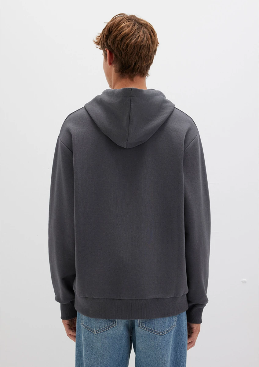 0 Review Of Product سويت شيرت أزرق بغطاء رأس مطبوع عليه شعار Mvjns باللون الرمادي الداكن