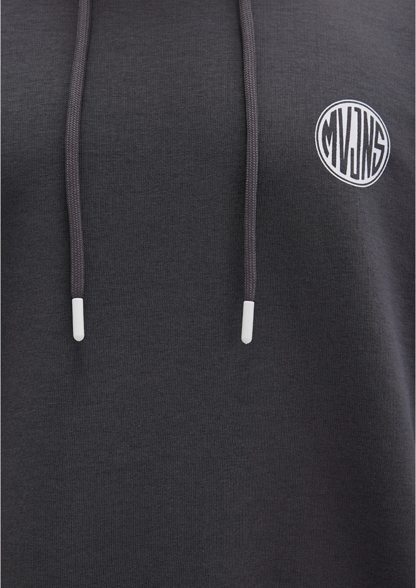 سويت شيرت أزرق بغطاء رأس مطبوع عليه شعار Mvjns باللون الرمادي الداكن