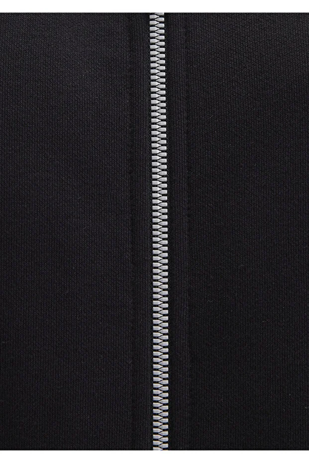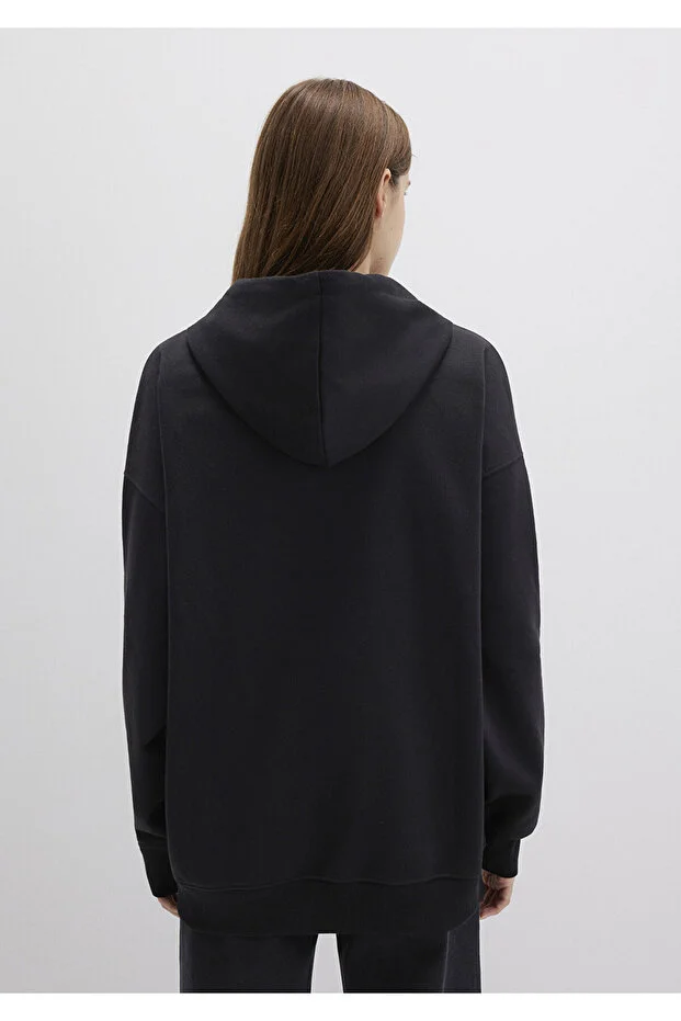 سويت شيرت أسود بغطاء رأس وسحاب أزرق 1610221-900
