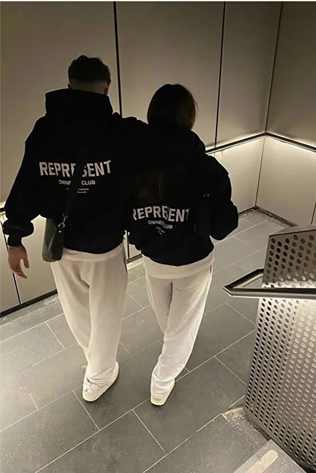 سويت شيرت بغطاء رأس مطبوع كبير الحجم من FECCY قطني، بتصميم زوجين عاشقين