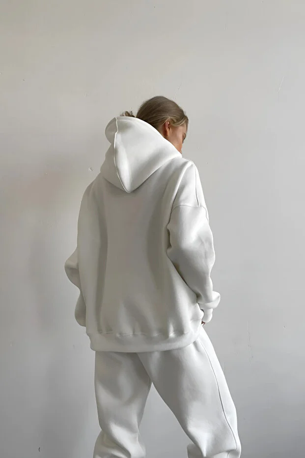 سويت شيرت بغطاء رأس من الصوف القطبي بمقاس كبير من GUARAZ باللون الأبيض للجنسين مصنوع من قماش ناعم