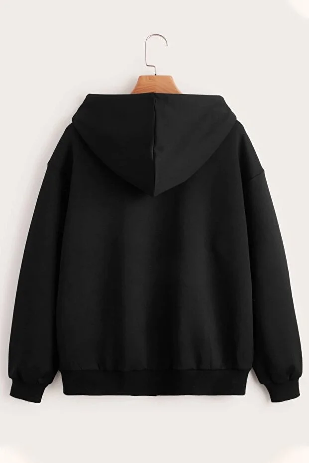 هودي أسود بتصميم Regular يناسب الإطلالات اليومية، مصنوع من قماش قطني بوليستر مطبوع بتقنية الطباعة الرقمية مع تأثير باهت/مستهلك لإضفاء لمسة عصرية.