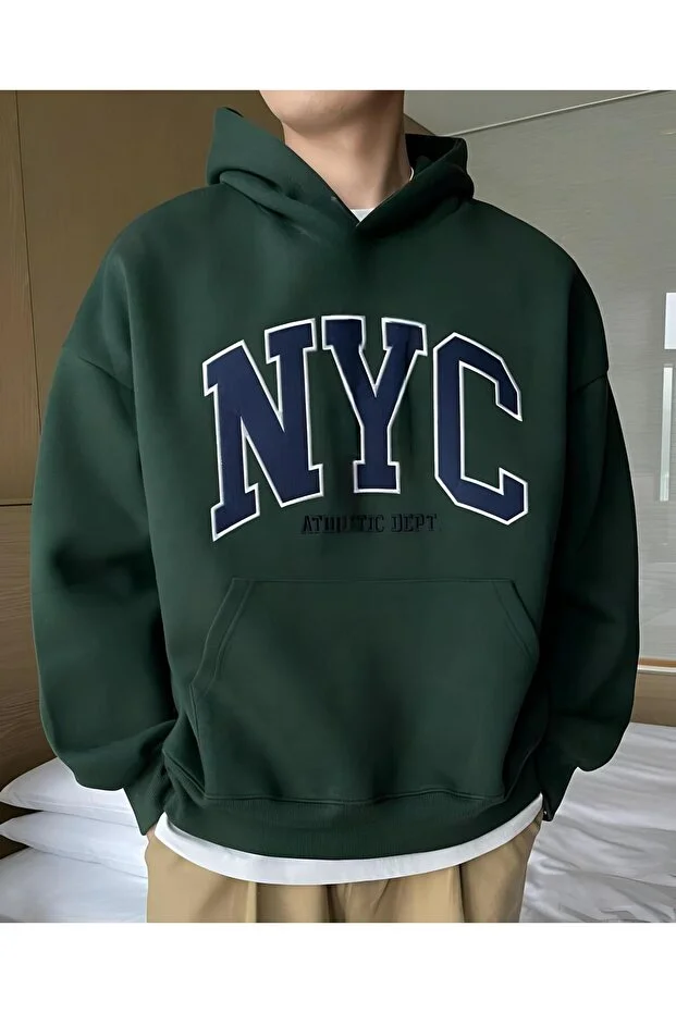 سويت شيرت بقلنسوة مطبوع عليه شعار مدينة نيويورك باللون الأخضر من trendgar مع جيب على شكل كنغر