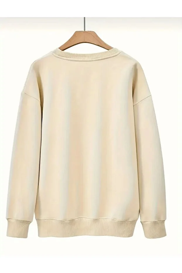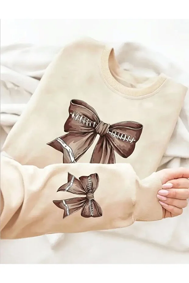 0 Review Of Product سويت شيرت بيج برقبة دائرية مطبوع عليه شريط بني من caddecombin