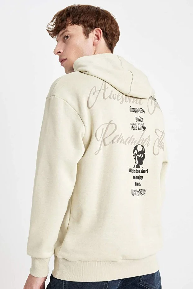 سويت شيرت ديفاكتو بوكسي فيت بغطاء رأس ومطبوع من الخلف