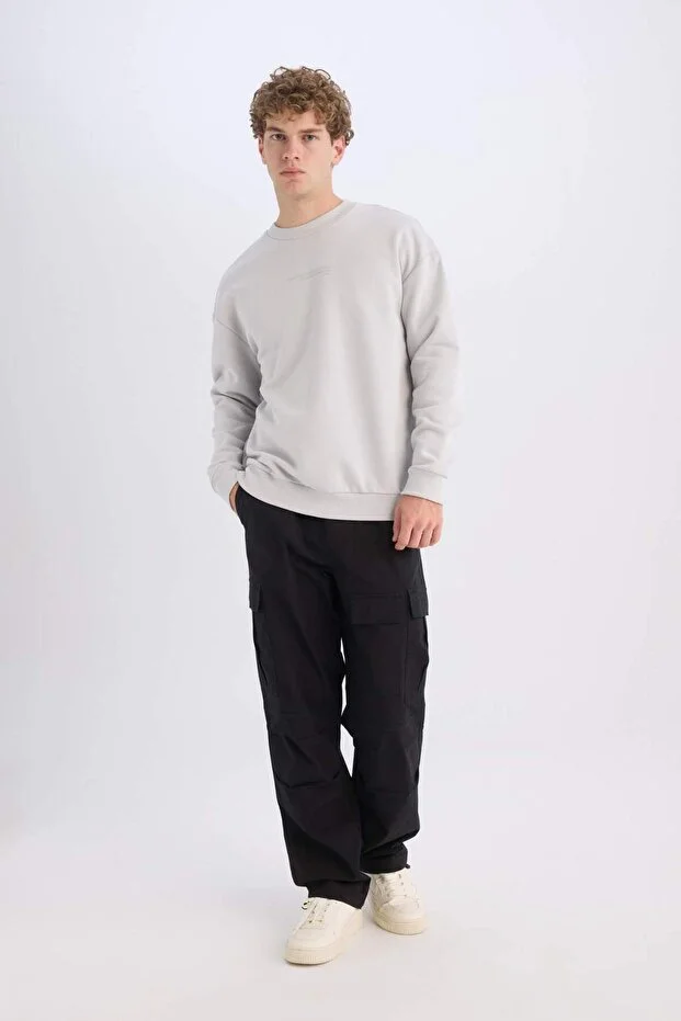0 Review Of Product سويت شيرت ديفاكتو بوكسي فيت مطبوع بياقة دائرية