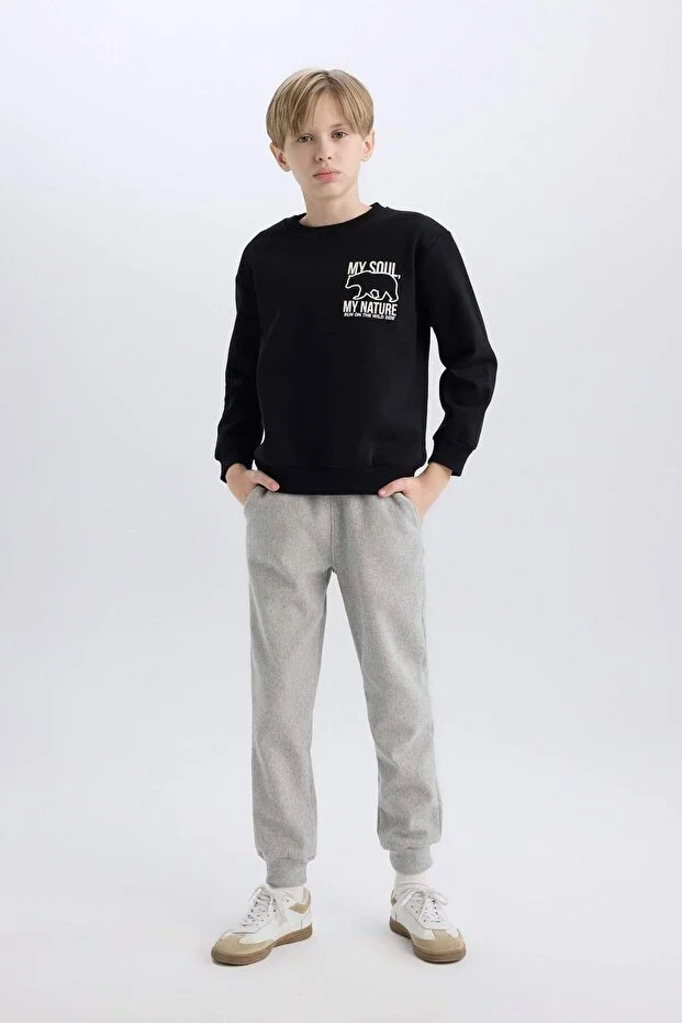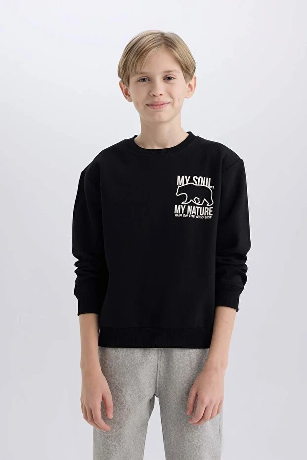 سويت شيرت ديفاكتو للأولاد برقبة دائرية وطبعة خلفية وبطانة صوفية ناعمة D6227A824CW