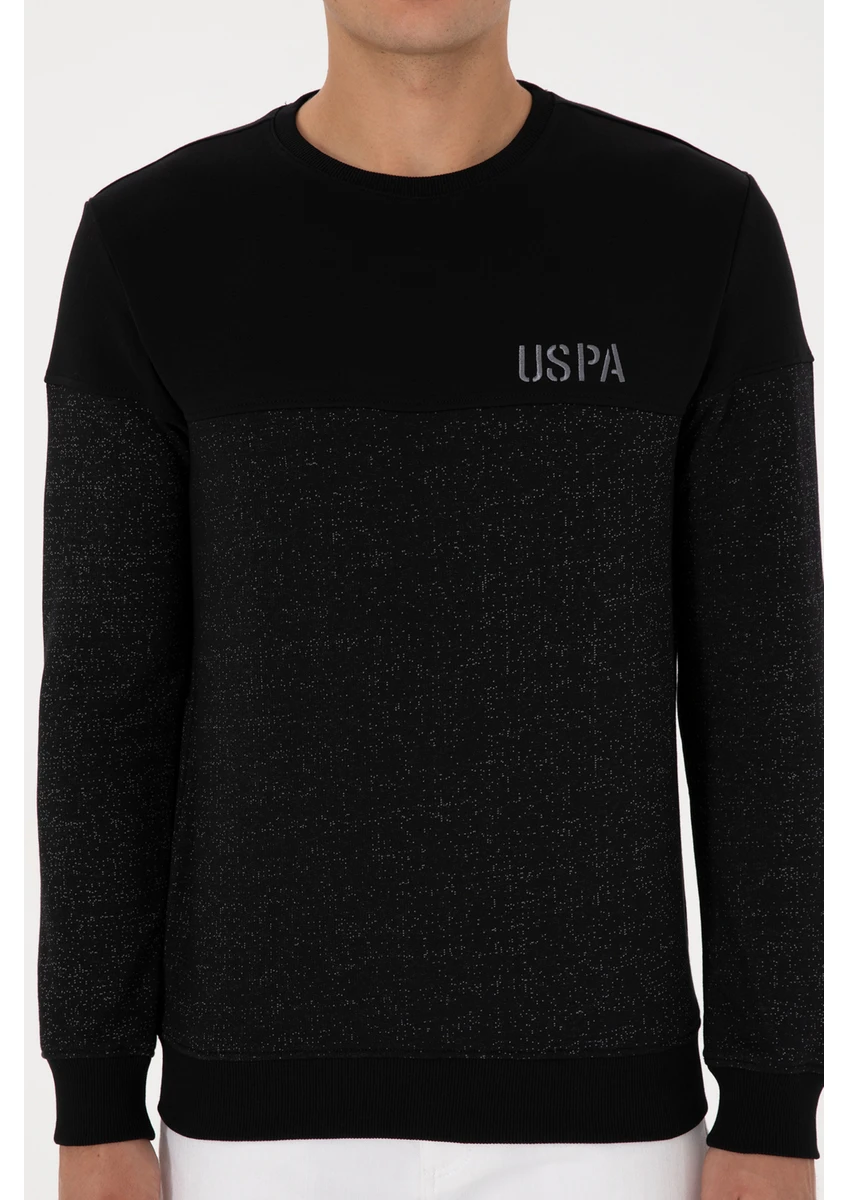 سويت شيرت رجالي أسود برقبة دائرية وقصة عادية من يو إس بولو أسوسييشن