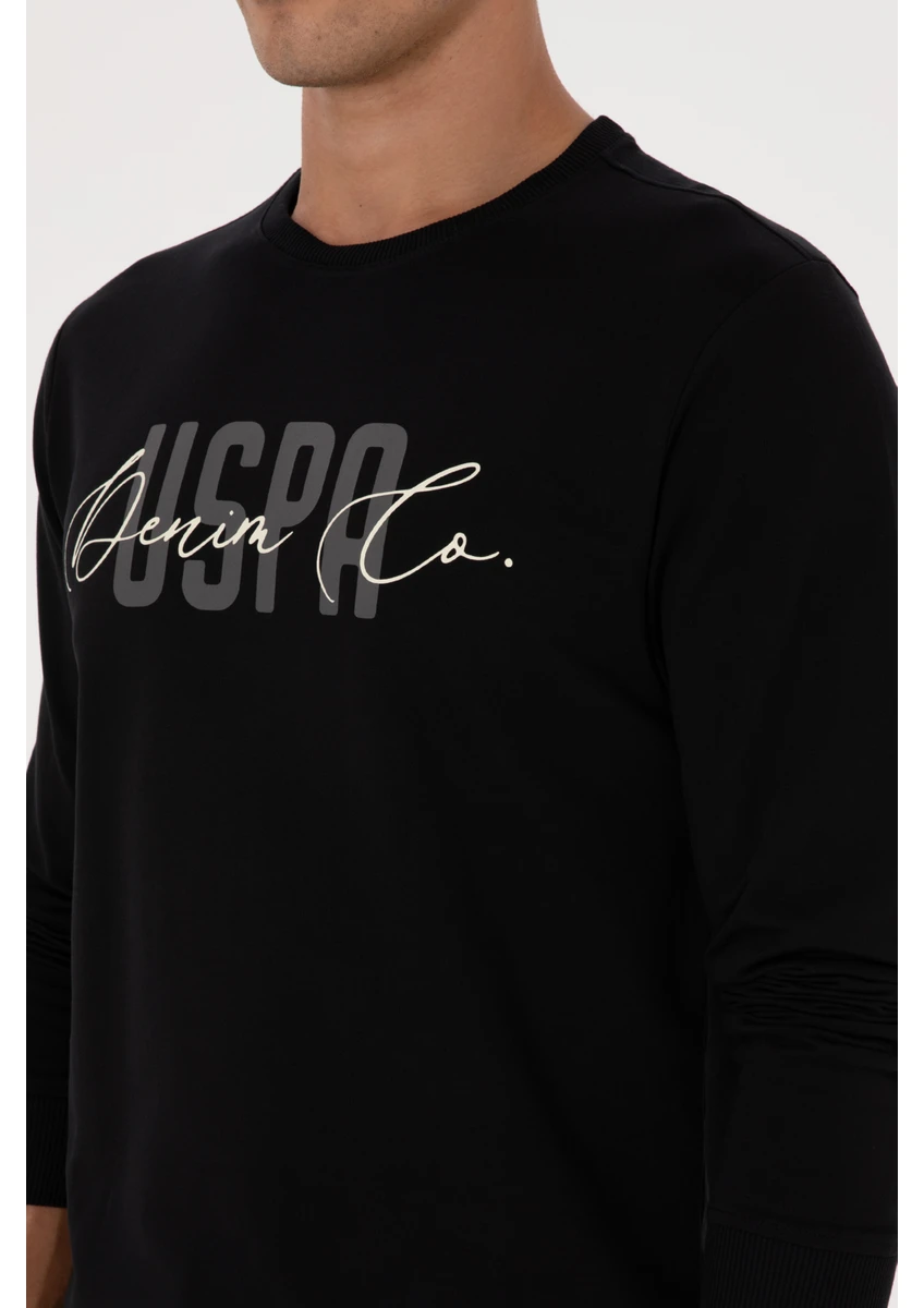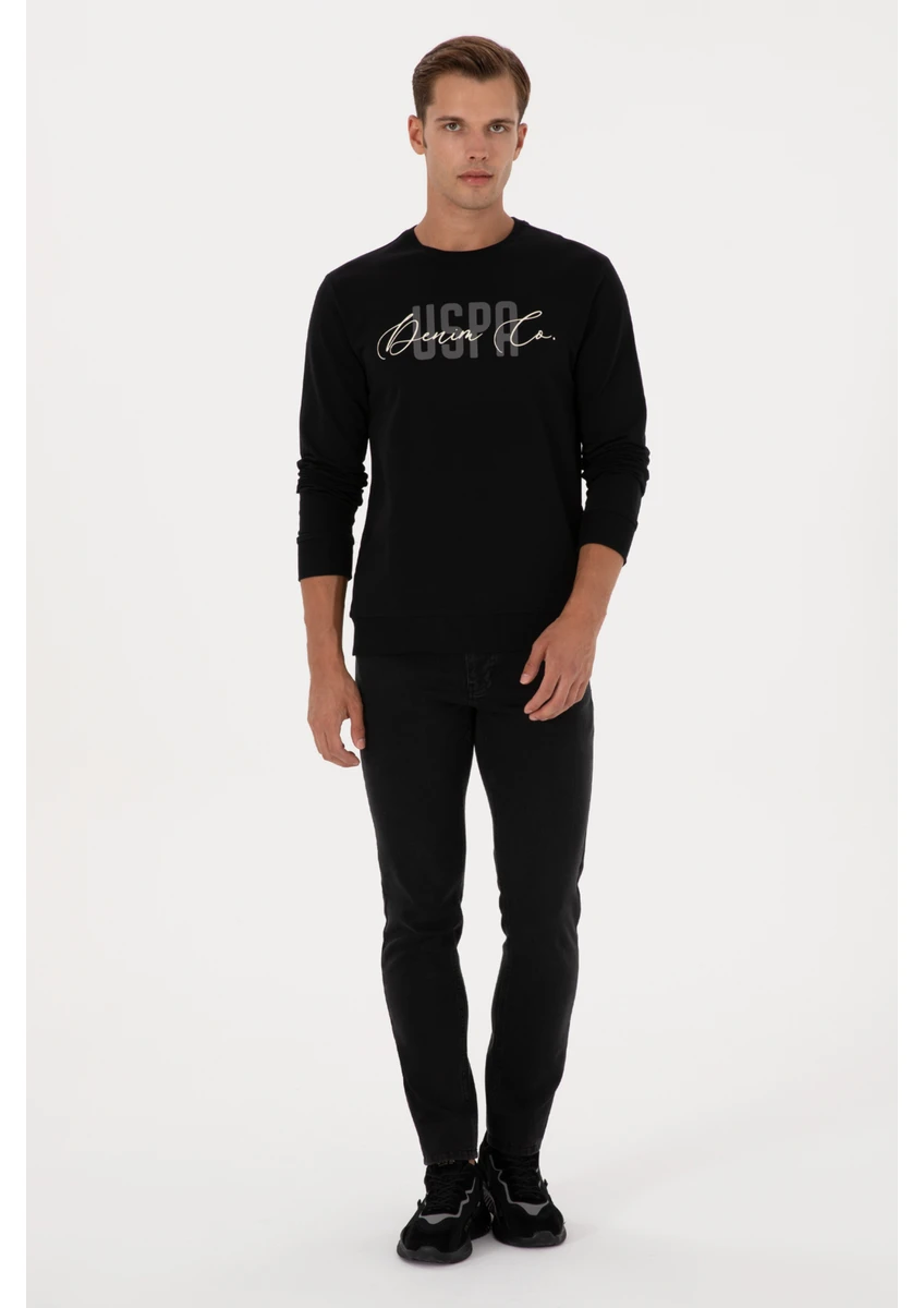 سويت شيرت رجالي أسود ضيق برقبة دائرية من يو إس بولو أسوسييشن،