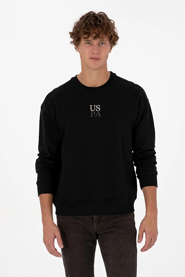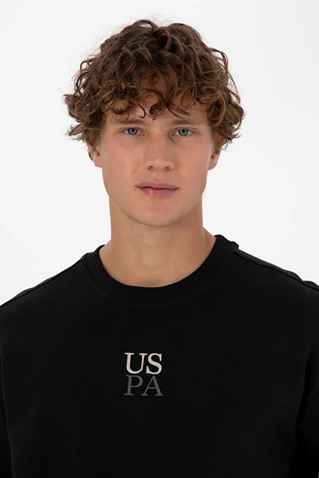 سويت شيرت رجالي أسود مريح بياقة دائرية من يو إس بولو أسن.