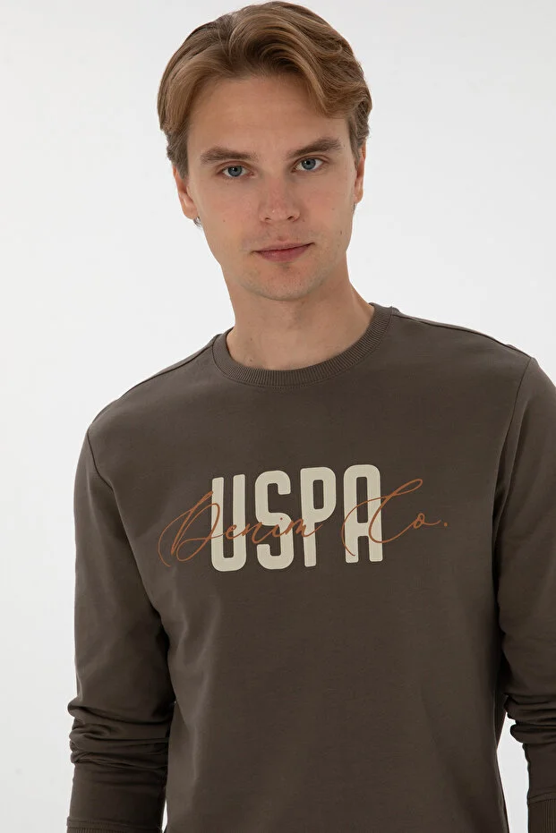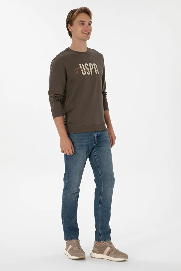 سويت شيرت رجالي من يو إس بولو أسن، بقصّة عادية وياقة دائرية، من فرو المنك
