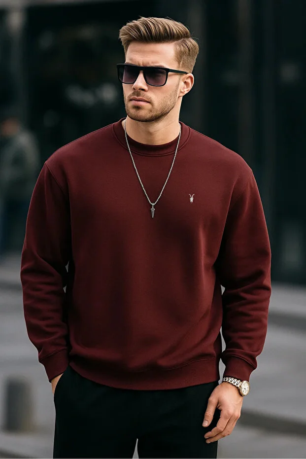 سويت شيرت رجالي COMBINE MİCHAİL أحمر كلاريت برقبة دائرية مريحة عادية