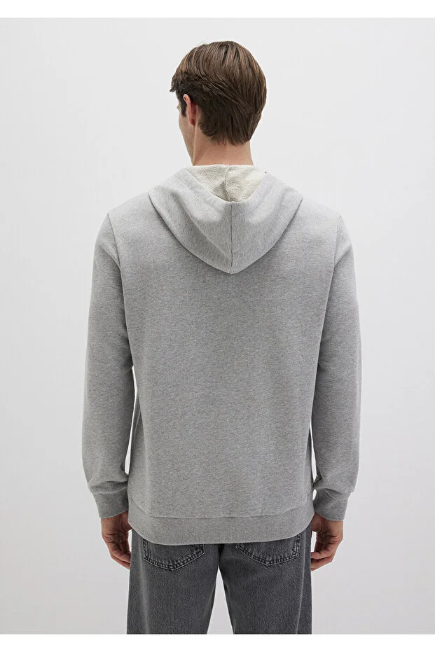 0 Review Of Product سويت شيرت رمادي بغطاء رأس ومطبوع عليه شعار أزرق