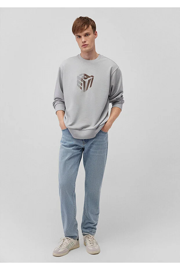 0 Review Of Product سويت شيرت رمادي مع طباعة خلفية زرقاء