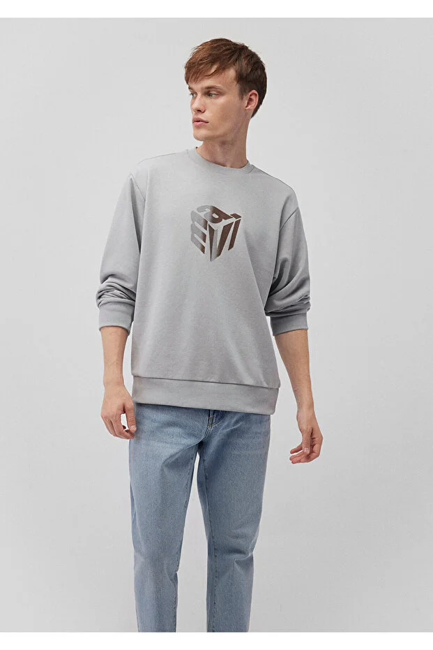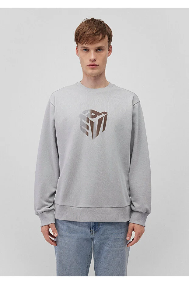 سويت شيرت رمادي مع طباعة خلفية زرقاء