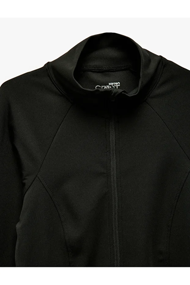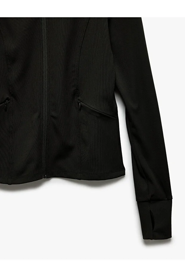 سويت شيرت رياضي قطني بجيوب بسحاب وياقة واقفة وقصة ضيقة
