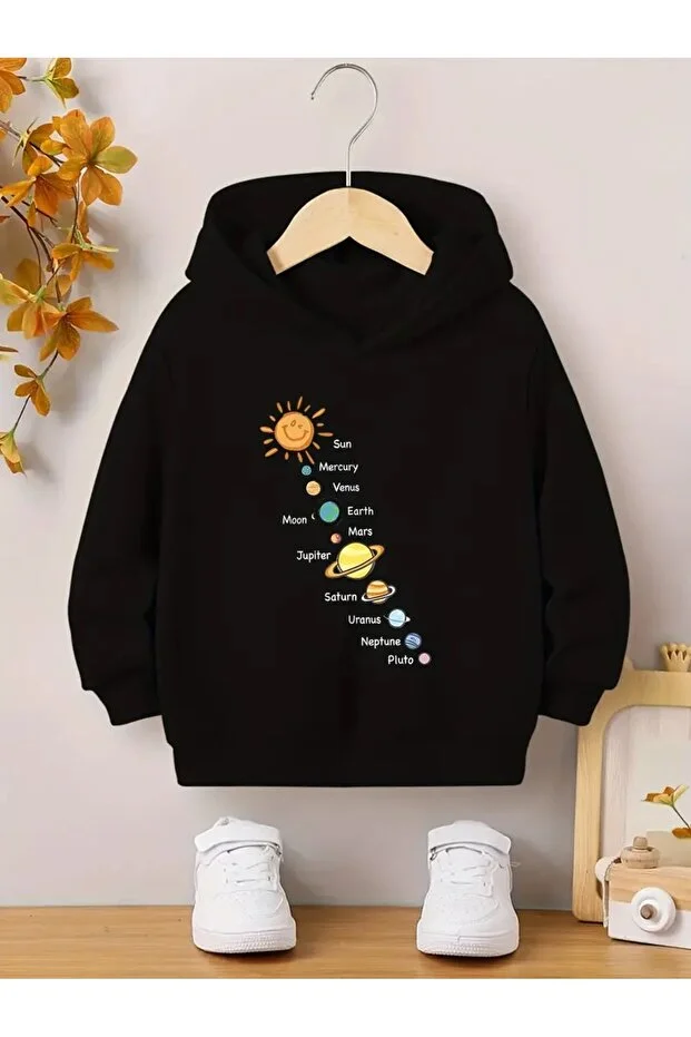 سويت شيرت شتوي بغطاء رأس من ون أغليازي، بطبعة كواكب للأطفال
