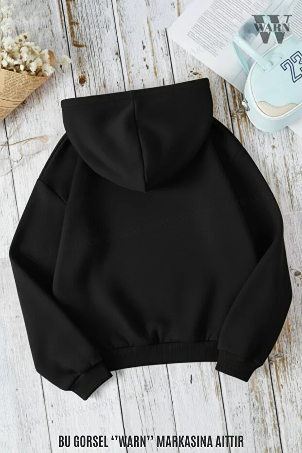 سويت شيرت شتوي واسع بغطاء رأس مطبوع عليه نجمة سوداء وحجر، مصنوع من القطن بنسبة 100%، بثلاثة خيوط.