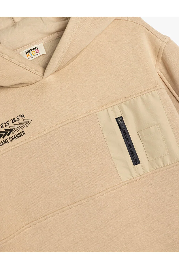 سويت شيرت صوف بغطاء رأس وأكمام طويلة مطبوع عليه شعار Koton