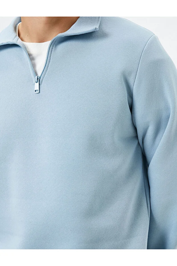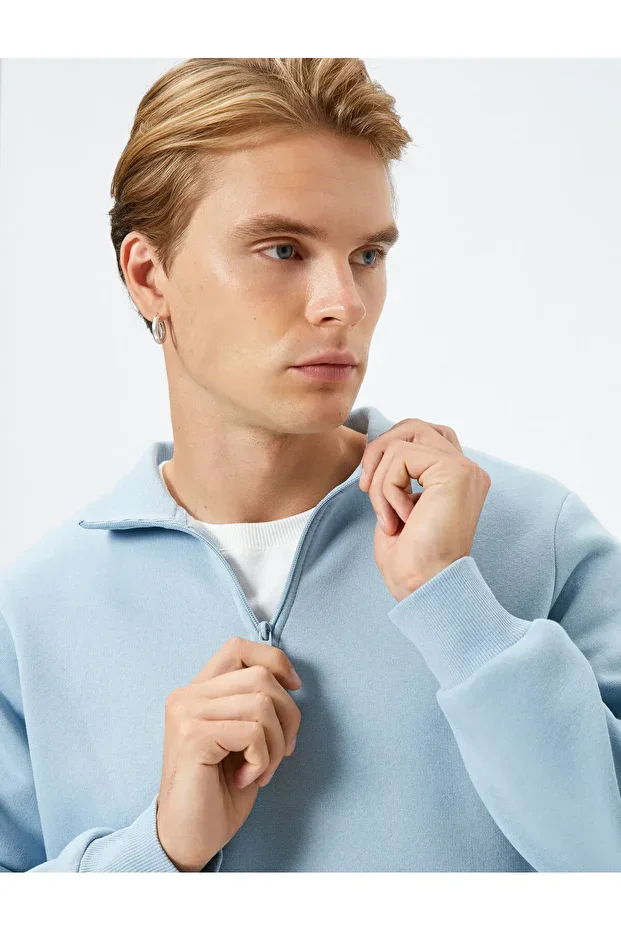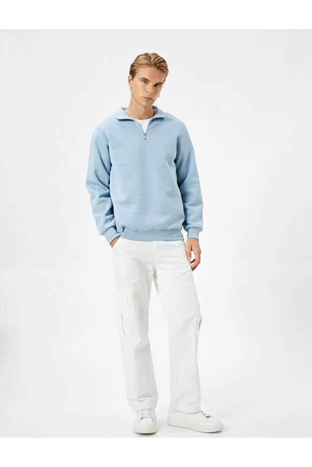 سويت شيرت قطني بنصف سحاب وياقة واقفة وأكمام طويلة ومرتفعة