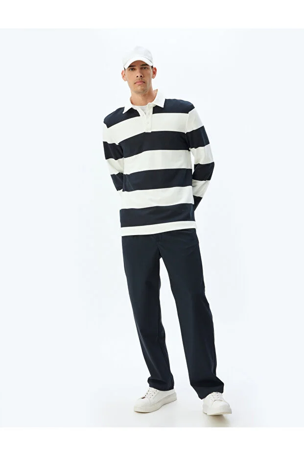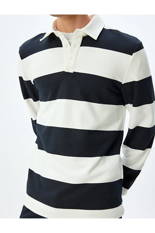 سويت شيرت قطني بياقة مطبوعة وتفاصيل أزرار من مزيج القطن