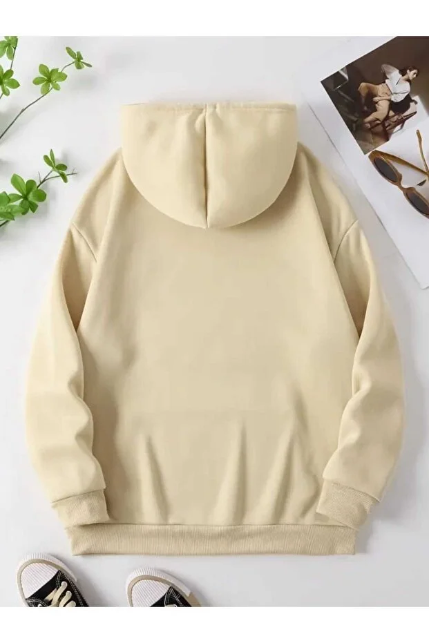 سويت شيرت قطني بيج اللون بغطاء رأس وجيب، مطبوع عليه صورة الشمس والقمر والكواكب من كاديكومبين