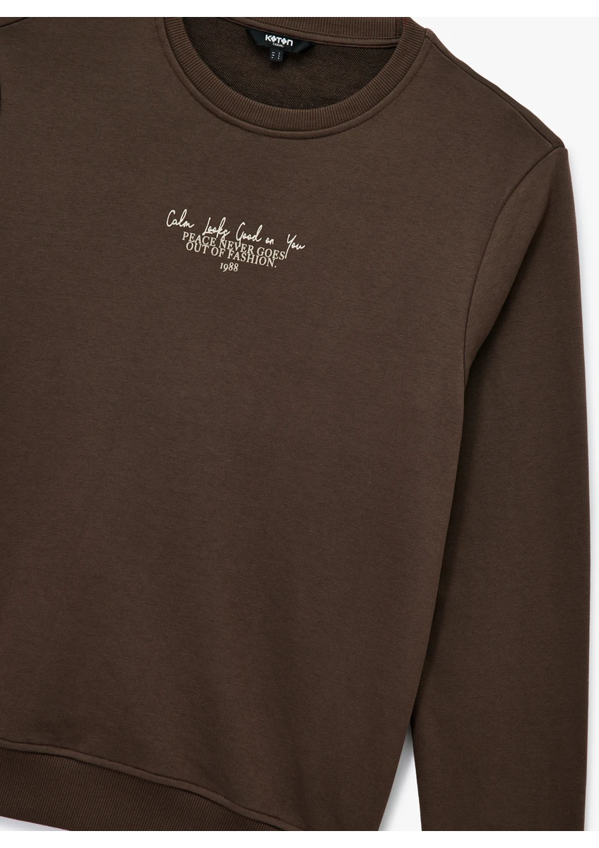 سويت شيرت قطني مطبوع بأكمام طويلة ورقبة دائرية