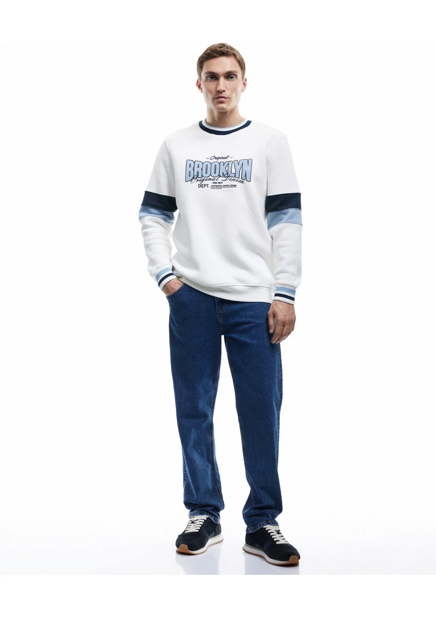 سويت شيرت قطني ناعم بأكمام طويلة ورقبة دائرية وطبعة جامعية بألوان متداخلة