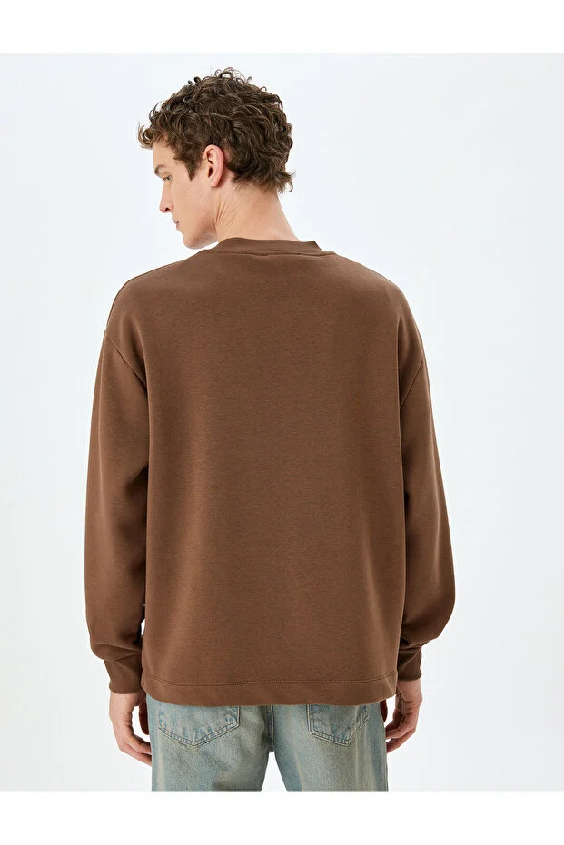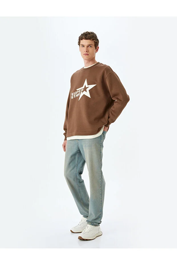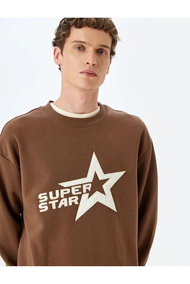 سويت شيرت كوتون بياقة دائرية ومقاس كبير مطبوع عليه شعار بارز