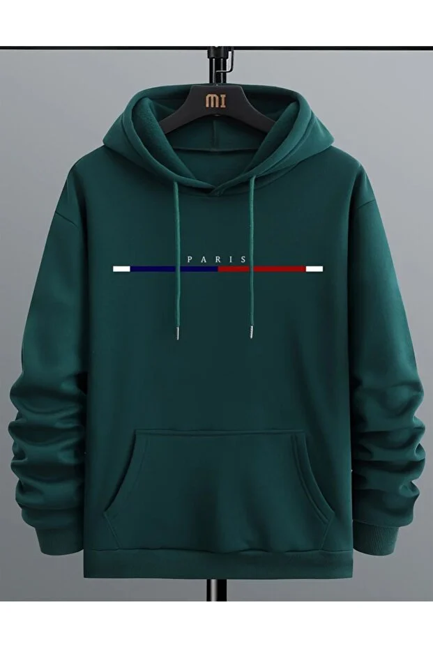 0 Review Of Product سويت شيرت مخطط من Cool Art Paris - بغطاء رأس كبير الحجم مطبوع باللون الأخضر الداكن