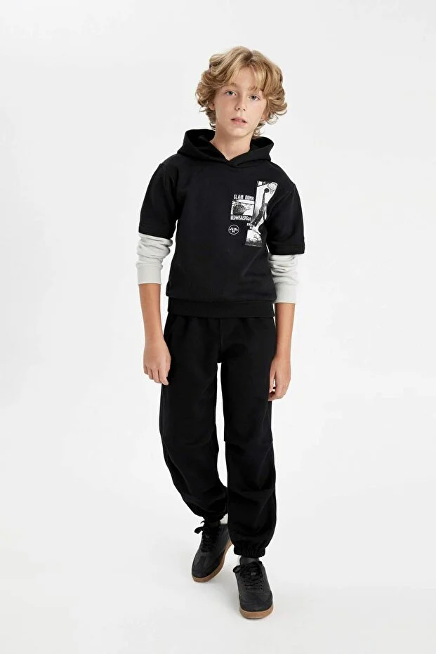 سويت شيرت مطبوع بغطاء رأس للأولاد من ديفاكتو