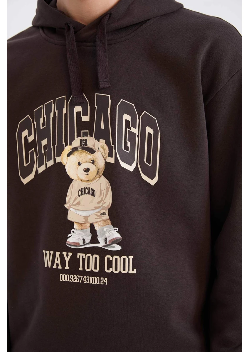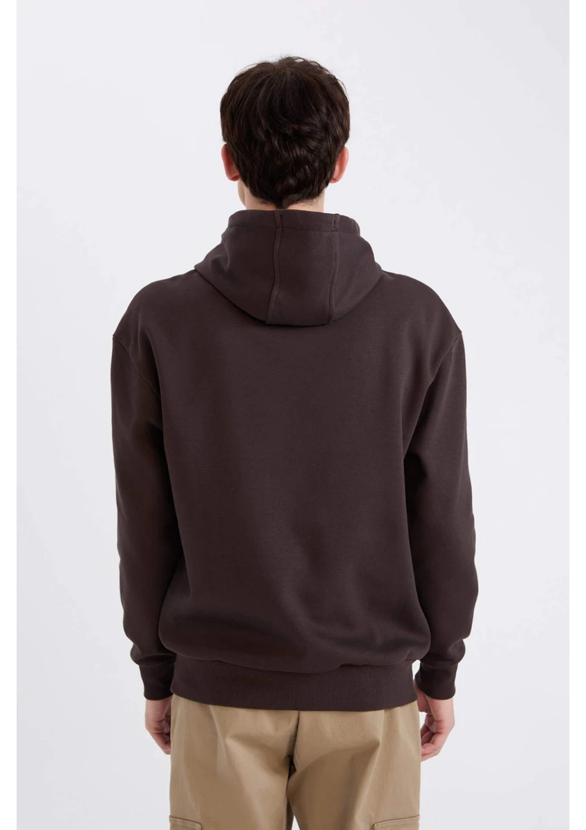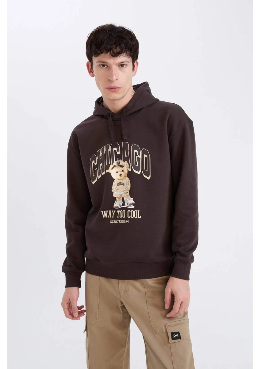 سويت شيرت مطبوع بغطاء رأس من DeFacto بقصة فضفاضة