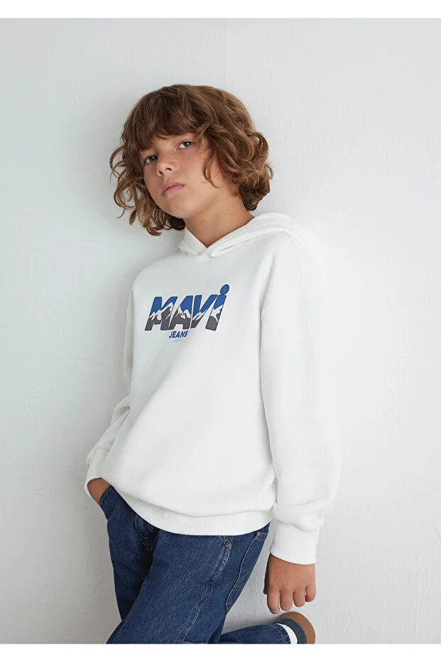 سويت شيرت مطبوع عليه بنطال جينز أزرق من قماش أوف وايت 6S10158-70057