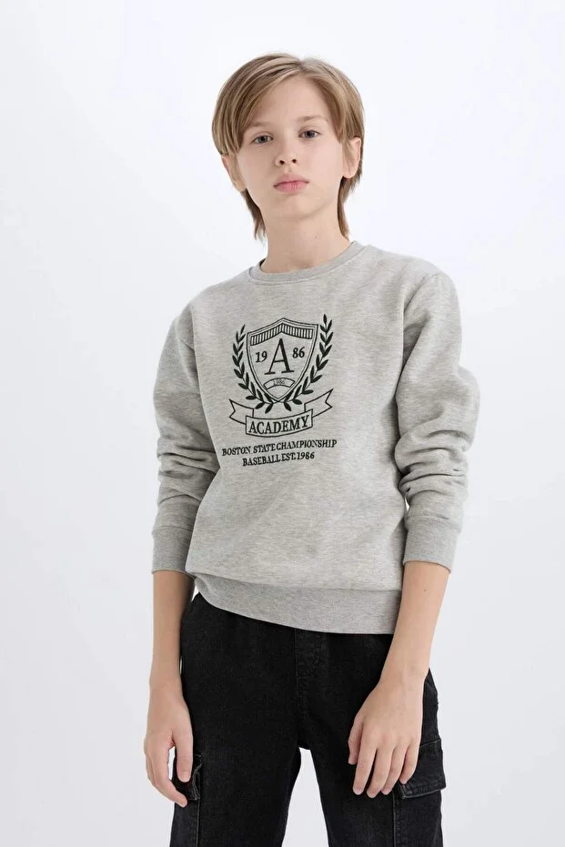 سويت شيرت مطبوع للأولاد من ديفاكتو بياقة دائرية وبطانة من الصوف الناعم