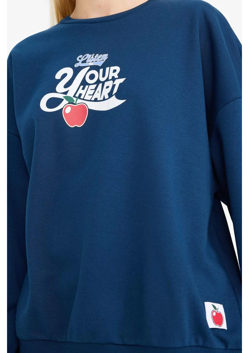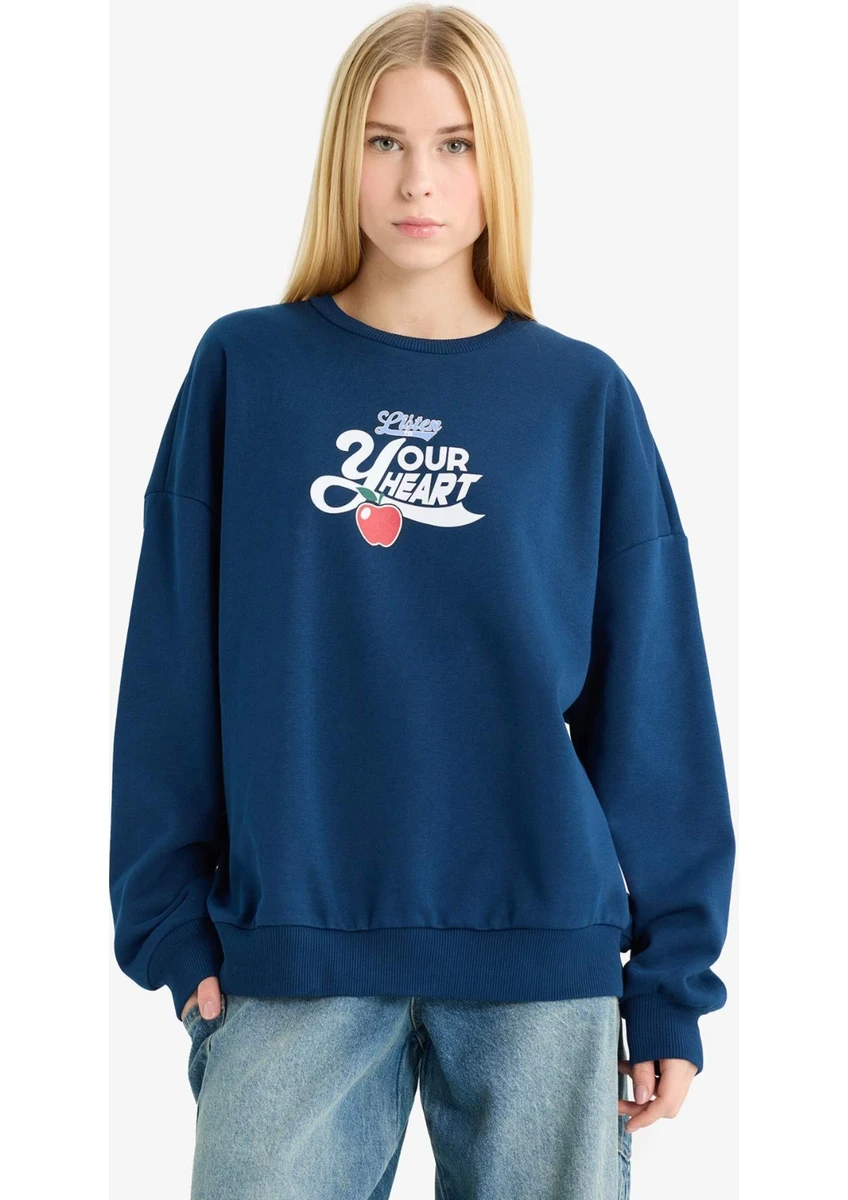 سويت شيرت DeFacto واسع وكبير الحجم بياقة دائرية وطبعة خلفية