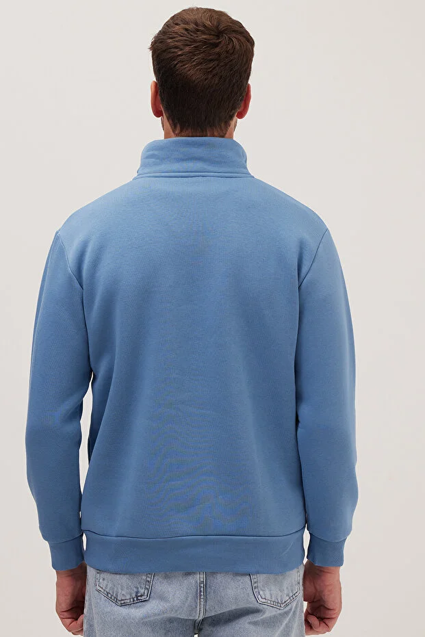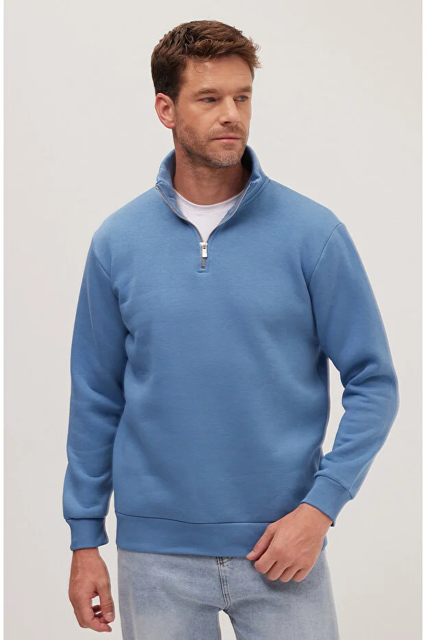 0 Review Of Product سويت شيرت Tudors للجنسين مصنوع من القطن بقصّة مريحة وسحّاب جزئيًا باللون الأزرق البترولي وياقة قائمة مع صوف قطبي من الداخل