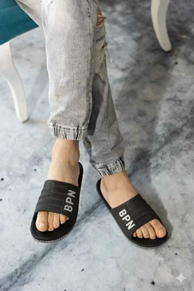 0 Review Of Product شباشب مودافرسات للجنسين ذات نعل أسود مانع للانزلاق، مناسبة للبحر والشاطئ وحمام السباحة والحمام والعمل والاستخدام اليومي.