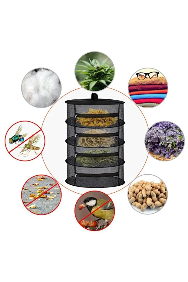 0 Review Of Product شبكة تجفيف الفواكه والخضراوات بأربع طبقات بسحاب من تينيكي | سلة تجفيف طبيعية قابلة للطي، لون أسود