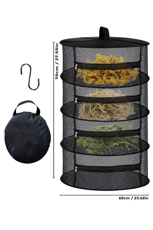 شبكة تجفيف الفواكه والخضراوات بأربع طبقات بسحاب من تينيكي | سلة تجفيف طبيعية قابلة للطي، لون أسود