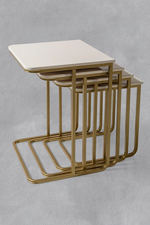طاولة جانبية من فيز بدون عجلات - طقم طاولات جانبية متداخلة من فيغاس مكون من 4 قطع - ذهبي -