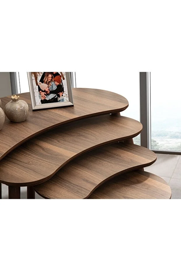 طاولة قهوة متداخلة من خشب MDF مكونة من 4 قطع من vovvahome MOON - لون الجوز