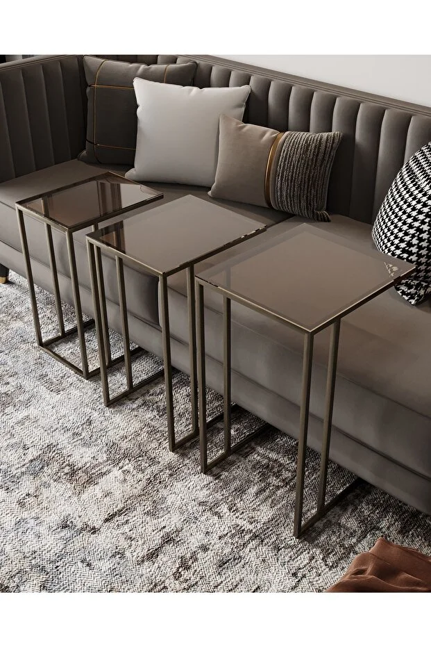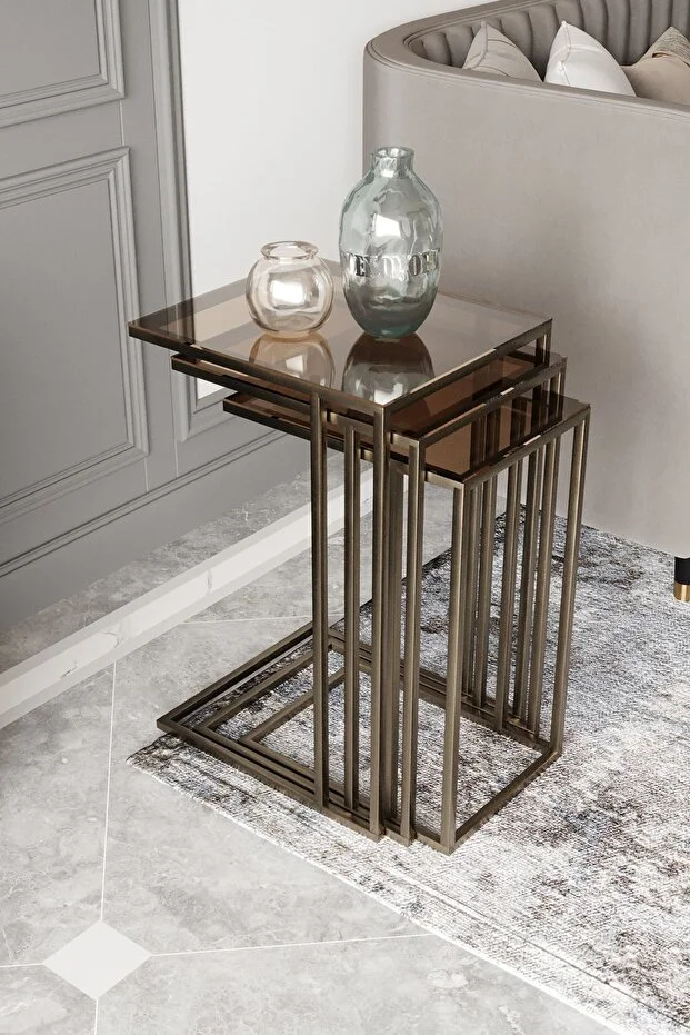 0 Review Of Product طاولة قهوة ميرا المتداخلة من ديكوبورت، نحاس، تشطيب عتيق، برونزي، زجاج