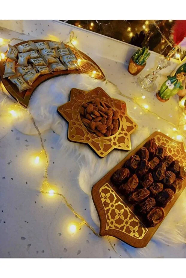 طقم أطباق تقديم من 3 قطع من تصميم مارس - لون الجوز - زينة ترحيبية لشهر رمضان